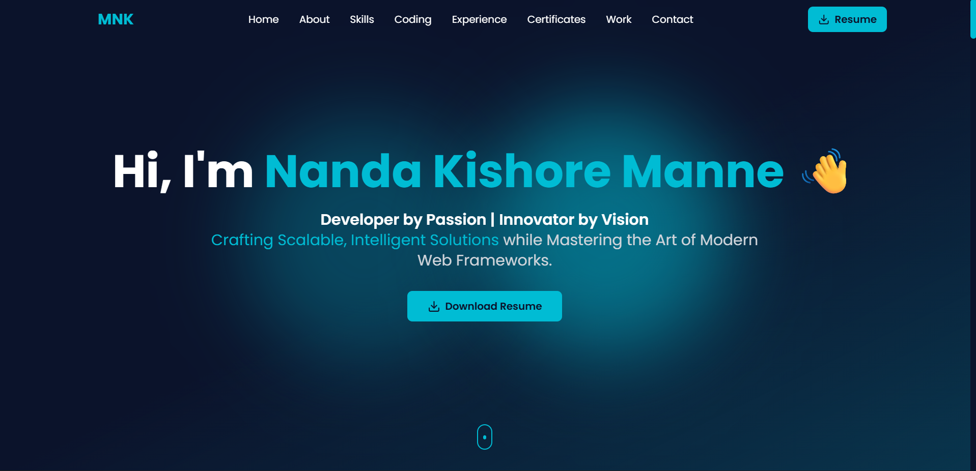 Hi, I'm Nanda Kishore Manne — a Full-Stack Developer by passion and an Innovator by vision.